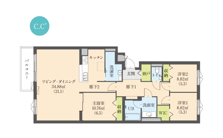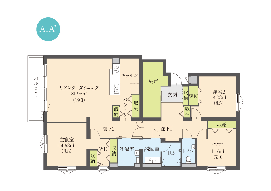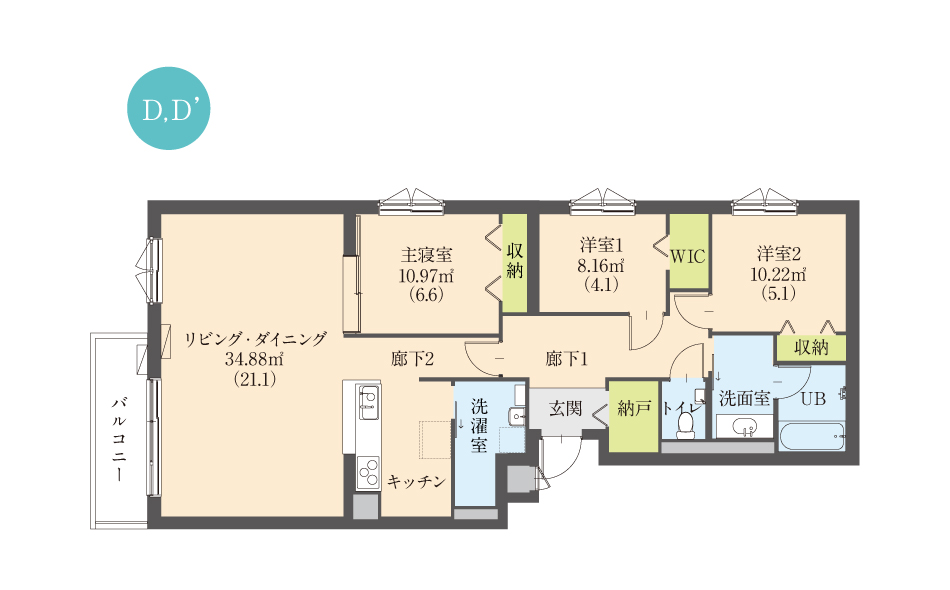 ※A’B’C’D’F’GはABCDFGの左右反転タイプとなります。